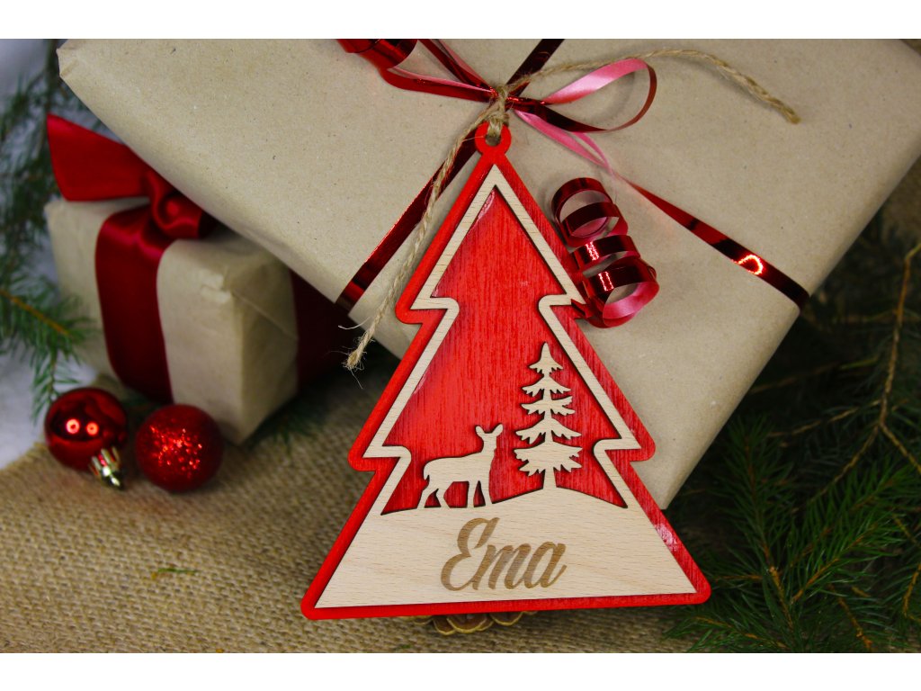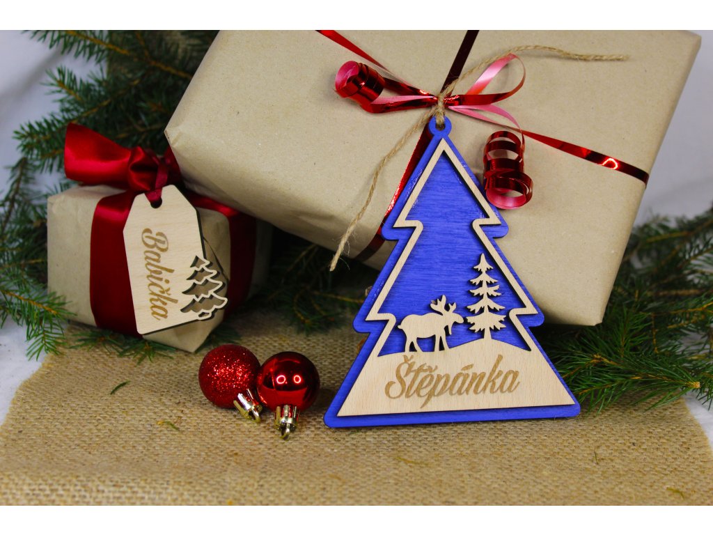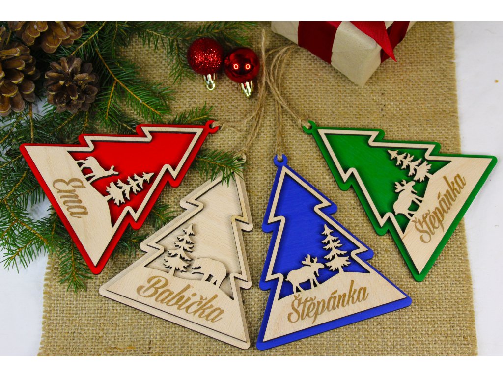 Design zahrnuje vánoční motivy – například stromeček nebo sněhovou vločku – laserově vyřezané a doplněné drobným gravírováním. Visačky lze opakovaně použít na stromeček i dárky, nebo je zakombinovat jako ozdobu adventního věnce.