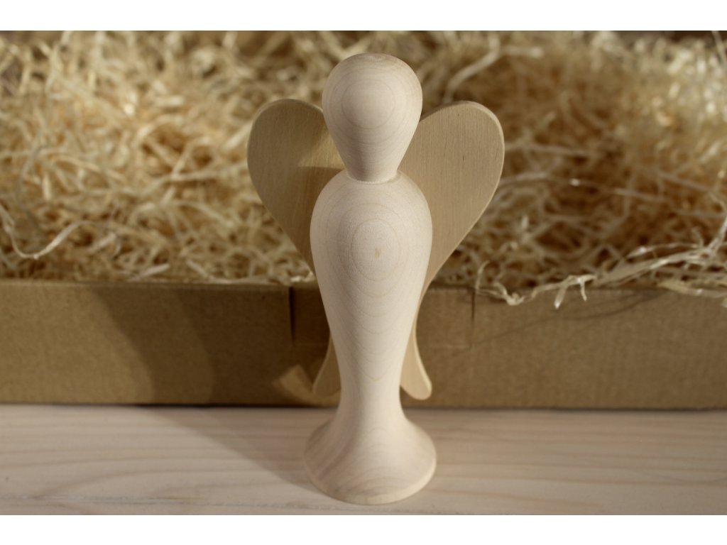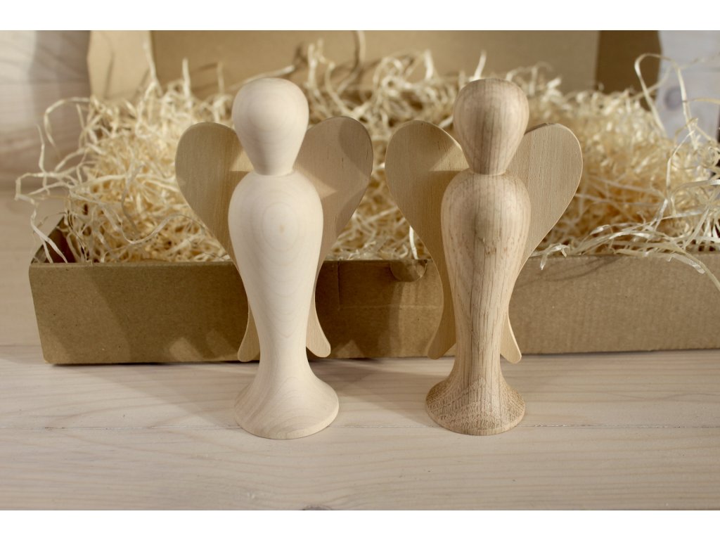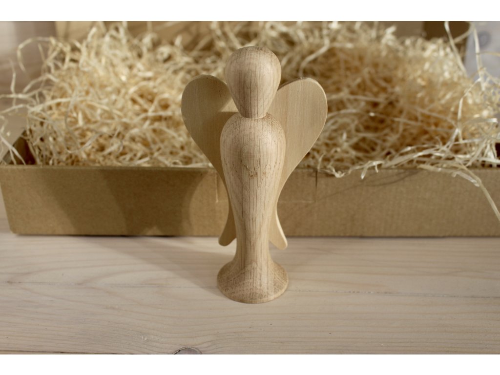 Dřevěný dekorativní anděl — minimalistický doplněk s jemnými křídly