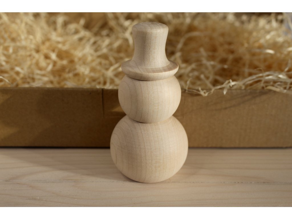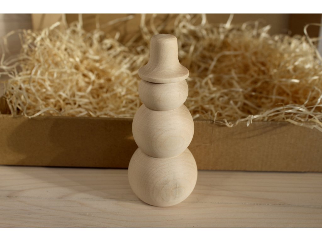 Roztomilý dřevěný dekorativní sněhulák je vyrobený z masivu, v nabídce je v menší i větší variantě. Každý kus je pečlivě opracovaný — design ve dvou nebo třech patrech je doplněn precizním kloboučkem, a díky ruční výrobě každý sněhulák nese jedinečný charakter s jemnými suky a strukturou dřeva.