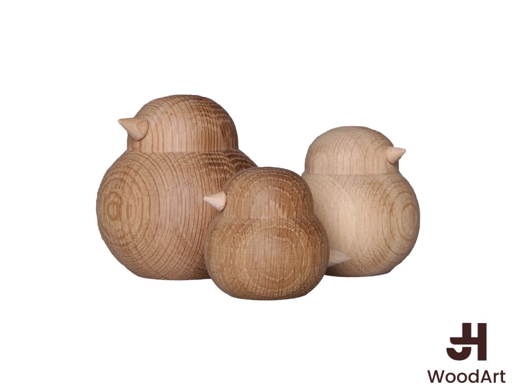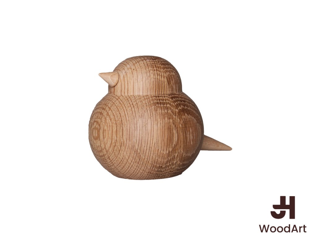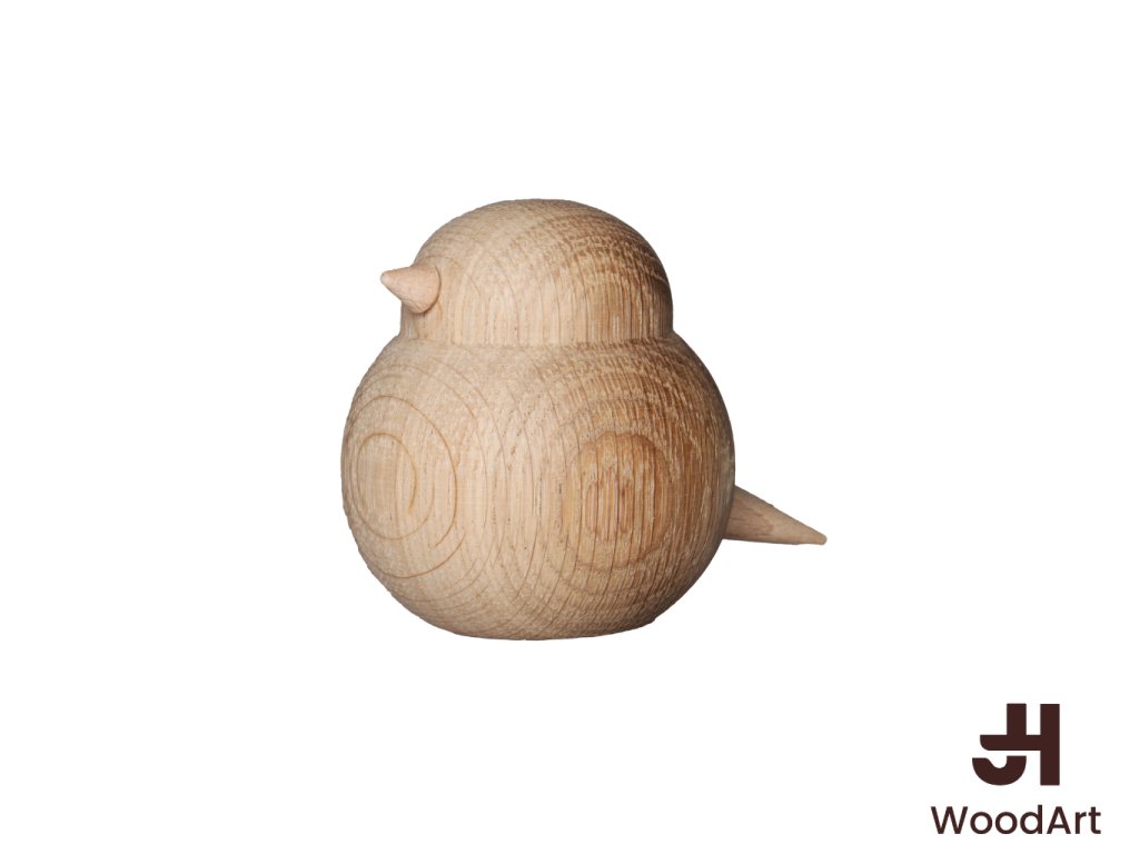 Exkluzivní ručně soustružený ptáček z masivního dubového dřeva se světlým zobáčkem. Dub je ceněn pro svou mimořádnou tvrdost a výraznou, charismatickou kresbu, která dělá z každého kusu unikátní interiérový doplněk od Jhwoodart.