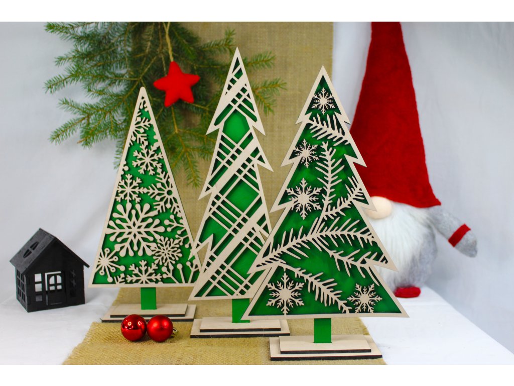 Sada dřevěných vánočních stromečků – sada 3 kusů z bukové překližky, malované