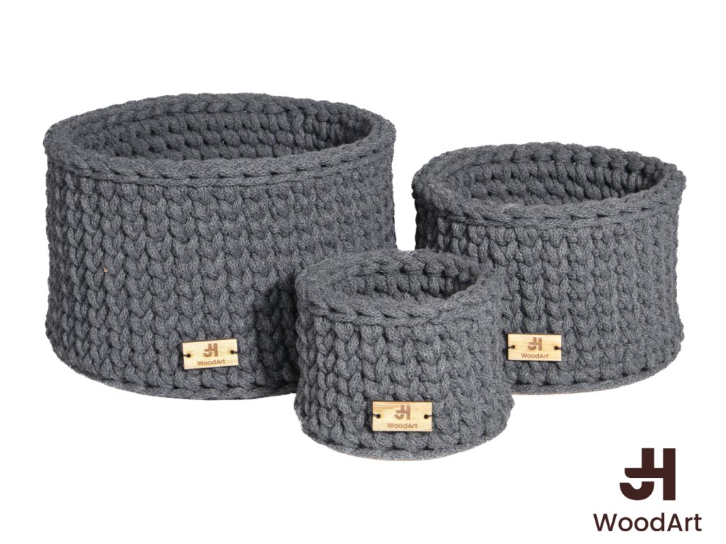 Každý košík je pečlivě uháčkovaný z kvalitní příze s pevnou strukturou, která drží tvar a zaručuje dlouhou životnost. Košíky se hodí na kosmetiku, drobnosti, dětské potřeby nebo jako designový doplněk do obývacího pokoje, ložnice či koupelny.